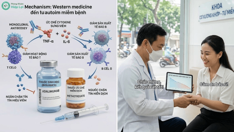 Dành cho những bệnh nhân kháng trị với các phương pháp trên. Bác sĩ sẽ sử dụng các loại thuốc sinh học (như Anakira, Tocilizumab) tiêm trực tiếp vào cơ thể để ức chế đặc hiệu các protein gây viêm (Interleukin-1, Interleukin-6). Phương pháp này mang lại hiệu quả cực kỳ ngoạn mục, giúp bệnh nhân quay lại cuộc sống bình thường.