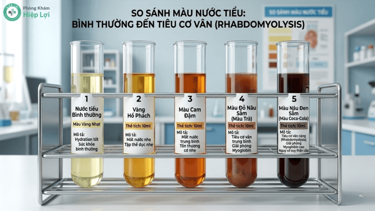 Nước tiểu chuyển sang màu sẫm như nước xá xị hoặc Coca là dấu hiệu cảnh báo ống thận đang bị tắc nghẽn nghiêm trọng bởi Myoglobin.