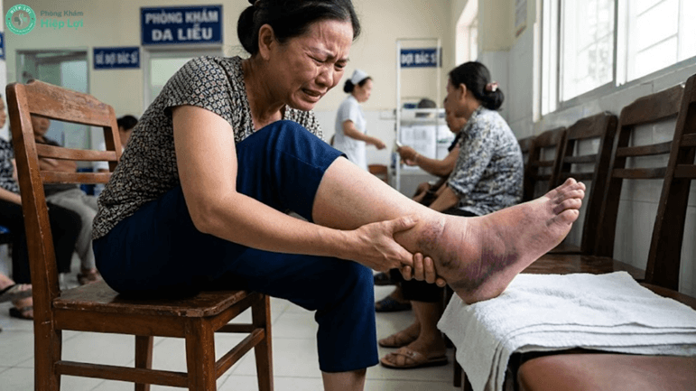 Nhiều bệnh nhân đến khám tại Hiệp Lợi trong tình trạng cổ chân cứng đơ, viêm nhiễm nặng do tự ý xử lý sai cách tại nhà: