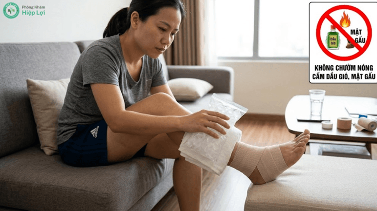 Chườm lạnh và quấn băng thun là giải pháp vàng trong 48 giờ đầu tiên. Tuyệt đối không xoa bóp dầu nóng để tránh làm sưng tấy trầm trọng thêm.
