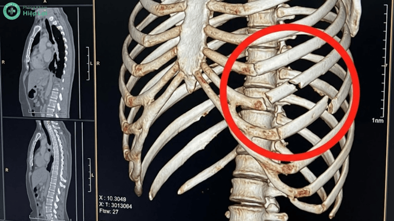 Chụp cắt lớp vi tính (CT Scan) là tiêu chuẩn vàng giúp bác sĩ phát hiện chính xác số lượng xương gãy và các tổn thương màng phổi đi kèm.