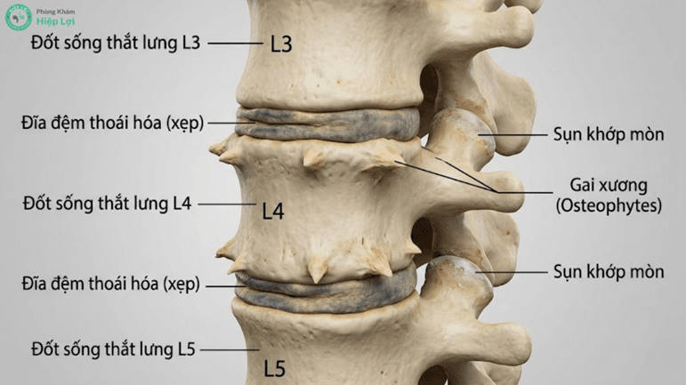 Thoái hóa cột sống thắt lưng là quá trình mài mòn sụn khớp và xẹp đĩa đệm, khiến các đốt sống cọ xát vào nhau gây đau đớn.
