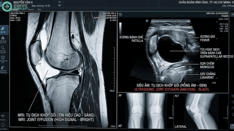 - Chụp X-quang/MRI: Tầm soát các nguyên nhân cốt lõi như gai xương thoái hóa, rách sụn chêm hay đứt dây chằng chéo.