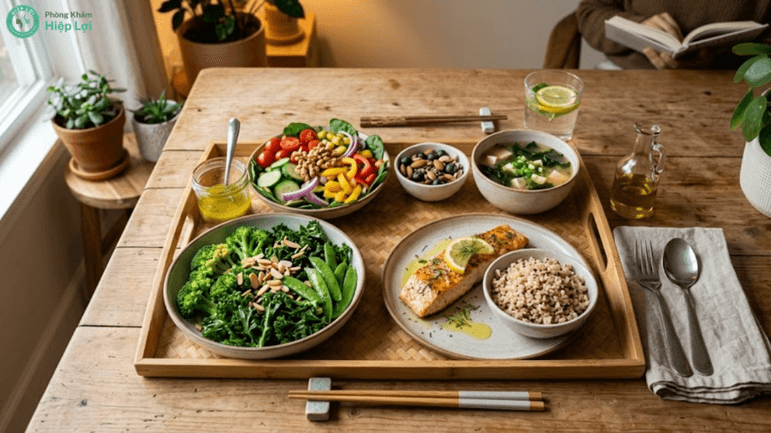 - Thực phẩm "vàng" kháng viêm: Bổ sung ngay các loại thực phẩm giàu Omega-3 (Cá hồi, cá thu, hạt lanh), Vitamin C (Cam, súp lơ) và gia vị chống viêm tự nhiên (Gừng, Tỏi, Nghệ tươi) vào bữa ăn hàng ngày.