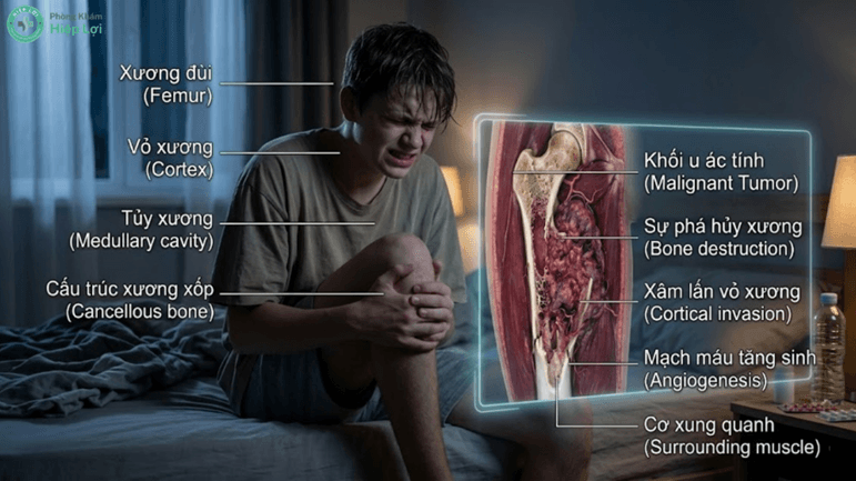 Ung thư xương là sự phát triển bất thường của các tế bào ác tính, phá hủy cấu trúc xương và có khả năng di căn nhanh chóng.