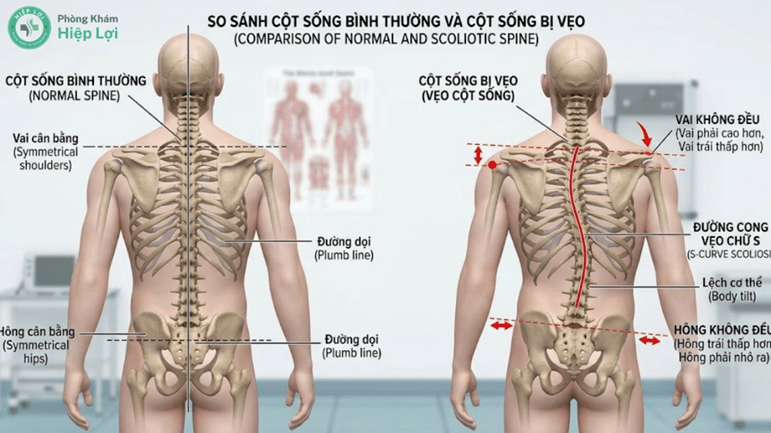 Đừng để cột sống gánh chịu thêm áp lực sai lệch mỗi ngày! Nếu bạn nhận thấy hai vai mình không đều, thường xuyên bị đau thắt lưng lan xuống chân hay dáng đi vẹo lệch, hãy đến ngay Phòng khám Cơ Xương Khớp Hiệp Lợi để được bác sĩ chuyên khoa thăm khám, đo độ vẹo trên phim X-quang và thiết kế phác đồ vật lý trị liệu phục hồi chuẩn xác nhất.