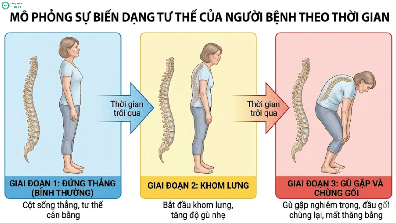 Nếu không can thiệp vật lý trị liệu và ức chế miễn dịch kịp thời, bệnh nhân sẽ dần mất đi khả năng đứng thẳng.
